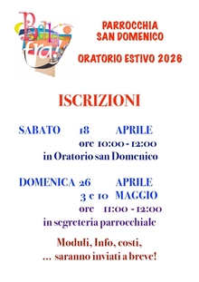 con grande gioia annunciamo l’apertura ufficiale delle iscrizioni al CORSO ANIMATORI dell’Oratorio Estivo 2026 delle parrocchie San Domenico e San Magno.